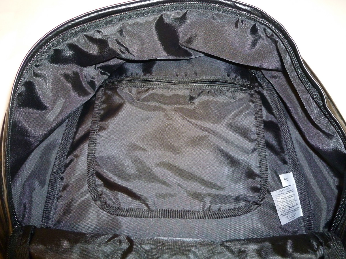 こちらは、外側にマジックテープ式のポケットと、ファスナー式のポケットがあり、更に奥に収納部分があります。ファスナーポケットのファスナーを開けると、携帯やメモ帳などの小物を収納可能なポケットが備え付けられており、あまり荷物を持たない人には丁度いい大きさです。