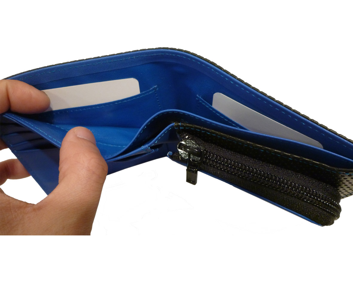 こちらの商品は、ラウンドファスナー式なので、三方開きで、中のモノが見やすく取り出しやすいという特徴があります。