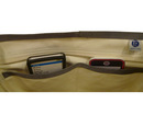 正面にあるA4サイズのポケットには、携帯などのさっと取り出せる小物が収納可能なポケットが設置されています。メイン内装部分には、傘入れスペースや、A6ノート、ペン刺し、名刺入れスペースなど、仕事をする上で必要なモノが収納可能。反対側にもファスナーポケットがあり、整理出来ます。また、本体サイズは、A4ファイルが楽々入ります。