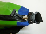メイン部分の口はクルクルと丸めて、ベルクロ(マジックテープ)でとめるタイプなので、中に水が入らない仕様です。