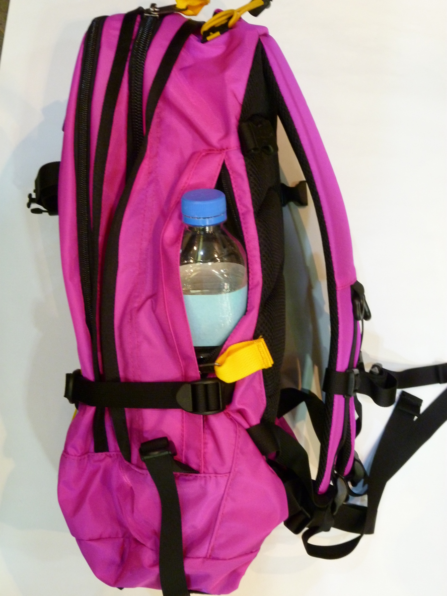 中にはメッセンジャー(M)サイズの方はA4ファイルがいくつか入り、500mlペットボトルも縦で悠々入るサイズ。更にはお弁当を入れれるマチ幅があり、通学用としてもおすすめ。メッセンジャー(S)サイズの方には、B5ファイルと少し小ぶりにはなりますが、こちらも500mlペットボトルや、小さめのお弁当箱が入るので、ちょっとしたお出掛けに便利。