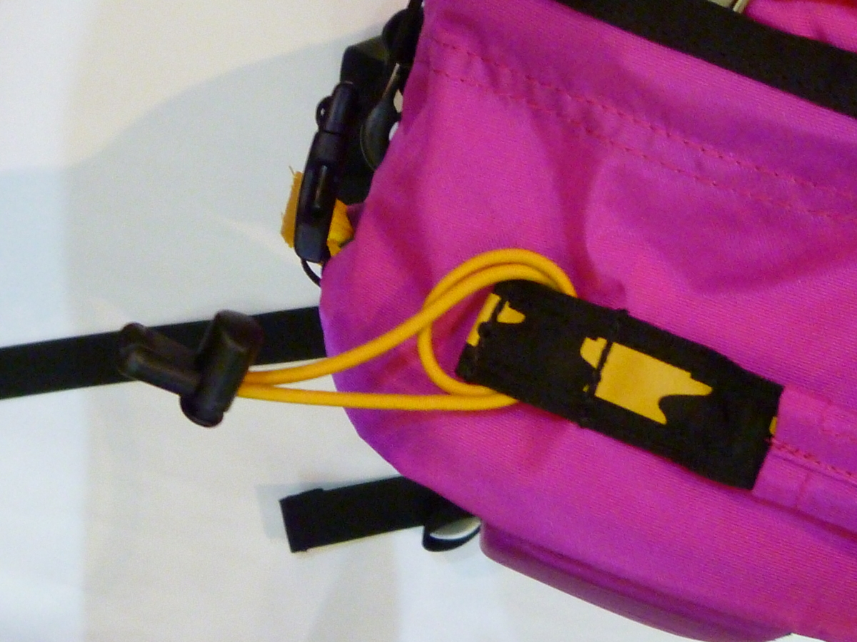 付属のポーチはそれぞれに取り付けられる場所がありますので探してみてください。また、本製品以外にも、ベルトループや、ショルダーストラップ部分に取り付けられるように、マジックテープとカラビナが付いています。