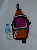 大きさは500mlペットボトルより少し大きいサイズで、正面にポケットが2箇所。上はL字型で下はまっすぐのファスナー。中にはペットボトルや、長財布が入るサイズで、メッシュポケットが1ヶ所とファスナーポケットが1ヶ所あり、小分けしやすくなっています。裏にはメッシュが張ってあり、夏場の汗ムレなどを防いでくれます。また、左右どちらでも斜め掛けしていただけるように付け替えることが可能です。