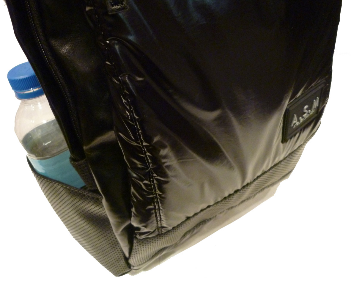 両サイドには、それぞれ違ったポケットが。500mlペットボトルを入れて頂くのに丁度いいポケットもございます。背面には、夏場の熱さやムレを防ぐ、通気性を考えたメッシュ素材を採用しています。