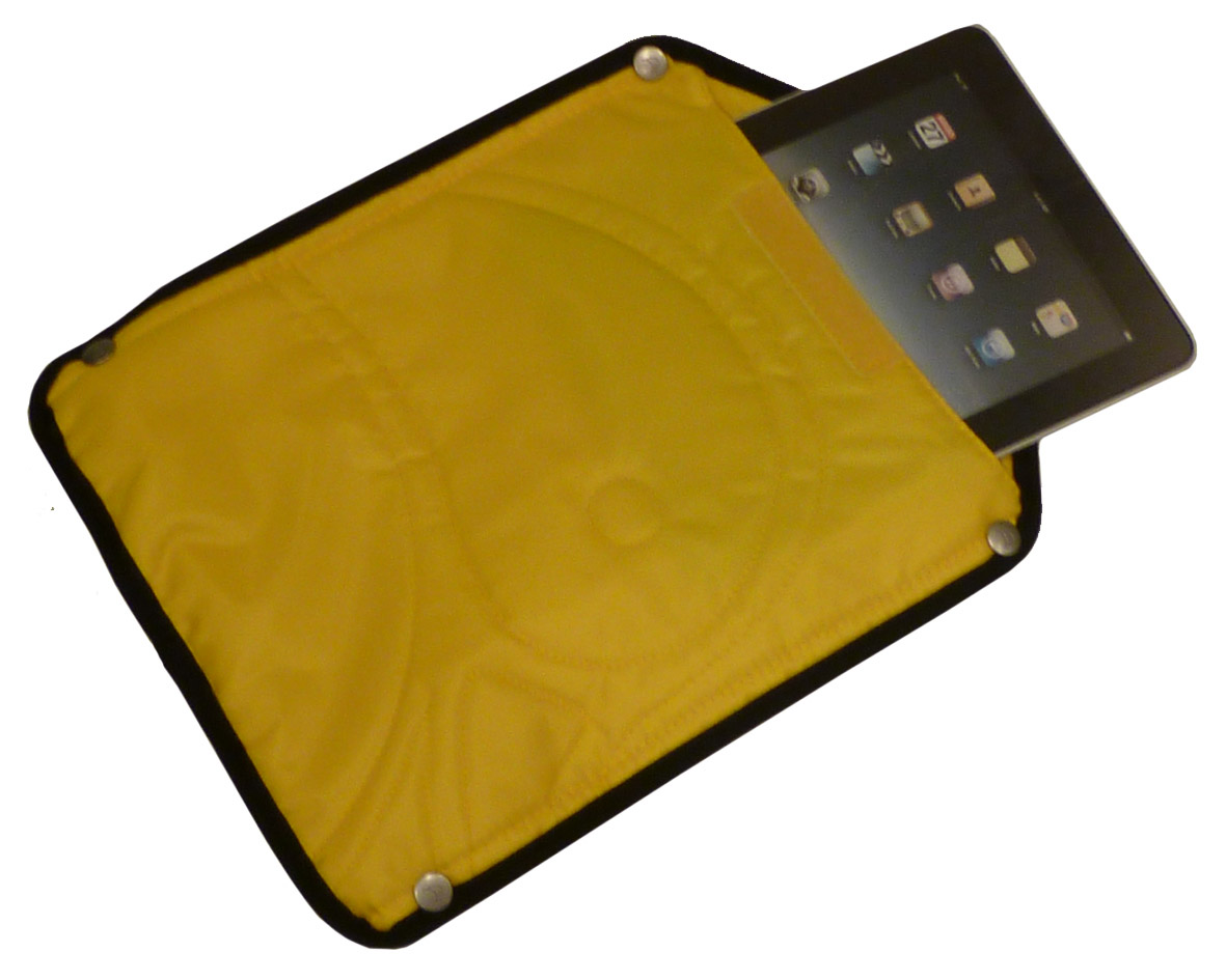 着脱したPCポケットには、iPadを入れて頂くのに丁度いいサイズ。良く見ると、マンダリナダックの"アヒル"のブランドマークが浮かび上がります。