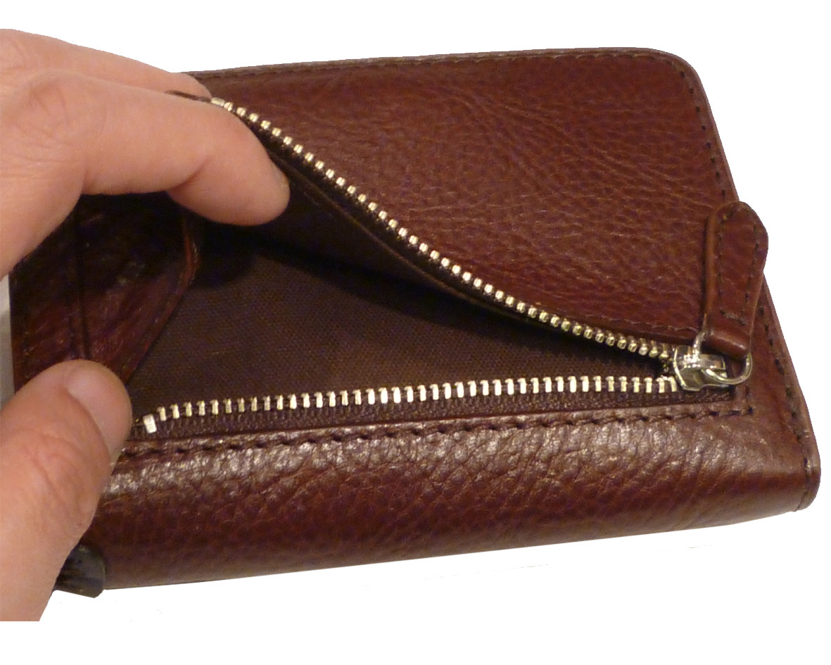 内装はオーソドックスで使いやすい。小銭スペースはラウンドファスナーなので見やすく取り出しやすいといいこと尽くし。