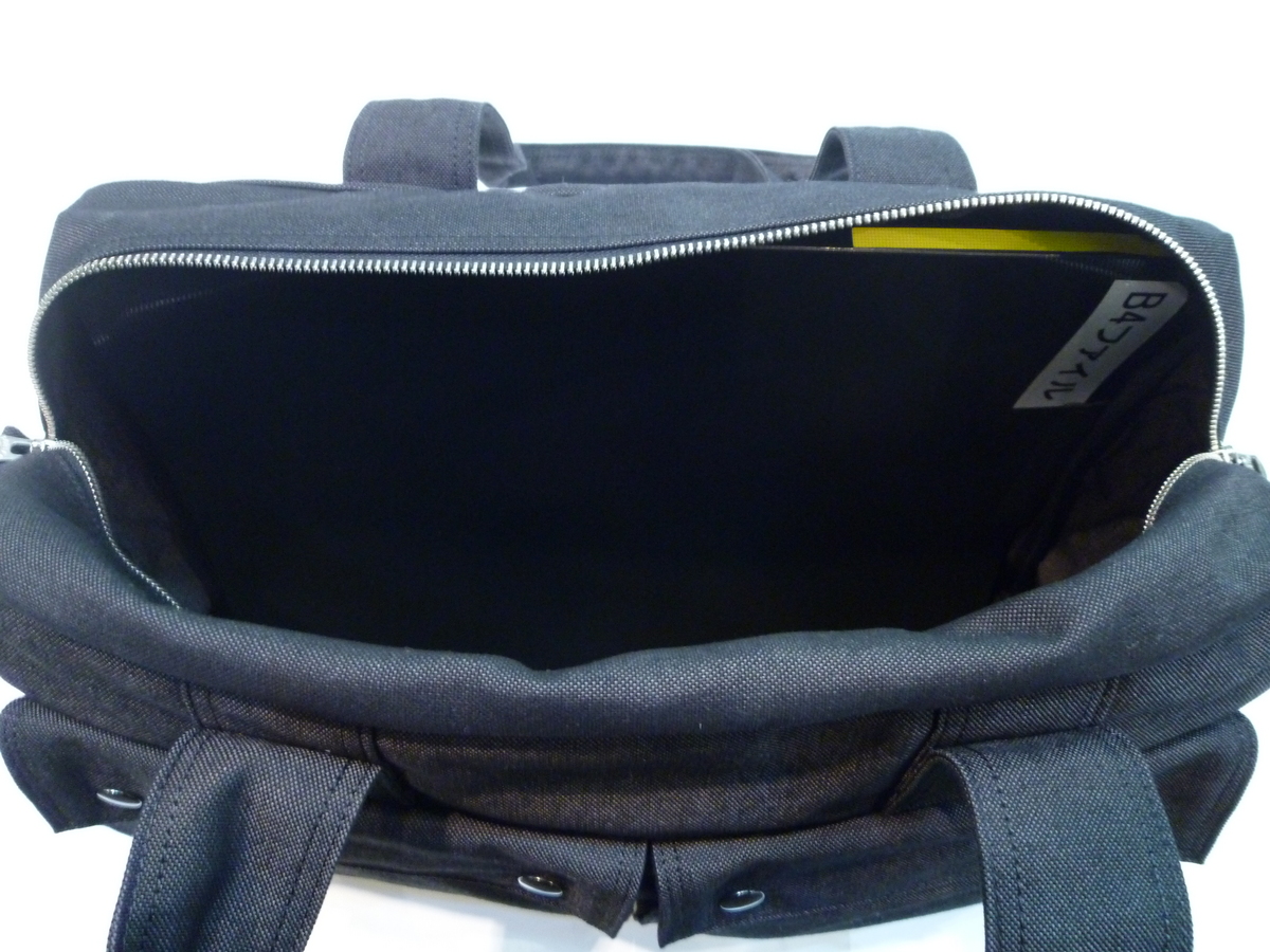 内装部分には、両サイドにざっくりとした大きめのポケットが2か所。メイン収納部分にはB4ファイルがすっぽりと入る大きいサイズ。人によって使い方は色々なのであえて細かいポケットは付けていません。