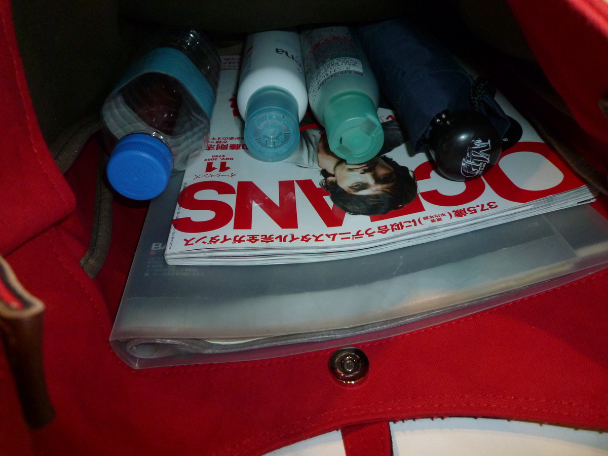 メイン部分には、A4ファイルや雑誌、折り畳み傘、500mlペットボトルや消臭スプレーを収納してもまだ余裕があります。更に内側に小物を入れておくのに便利なポケットがあります。