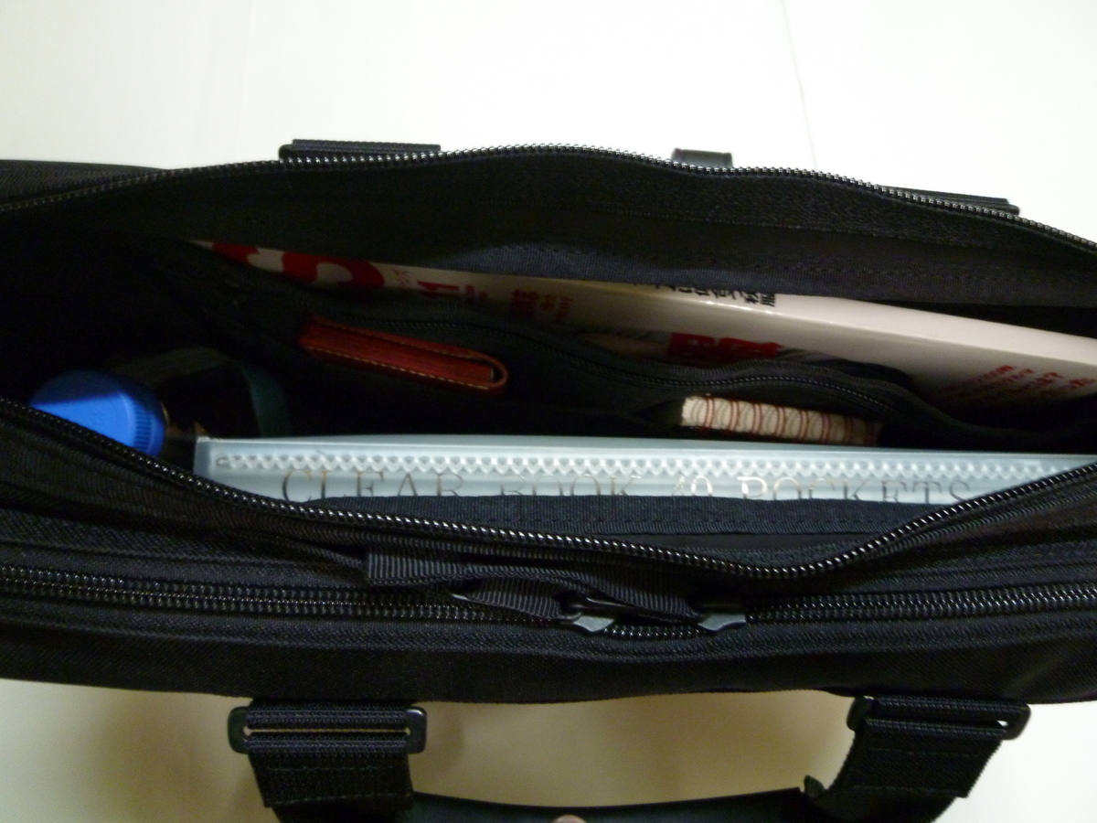 内装の両端には、それぞれ、メモ帳や携帯、名刺など仕事に必要なアイテムが収納可能なスペースが備え付けられており、A4ファイルがゆったりと入る大きさです。