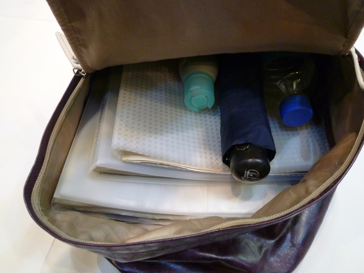 中には仕切り板が2枚あり、荷物によって仕切りの位置を変えられる優れモノで、取り出すことも可能です。メモ帳やiPadなどの電子機器を収納するスペースがあります。